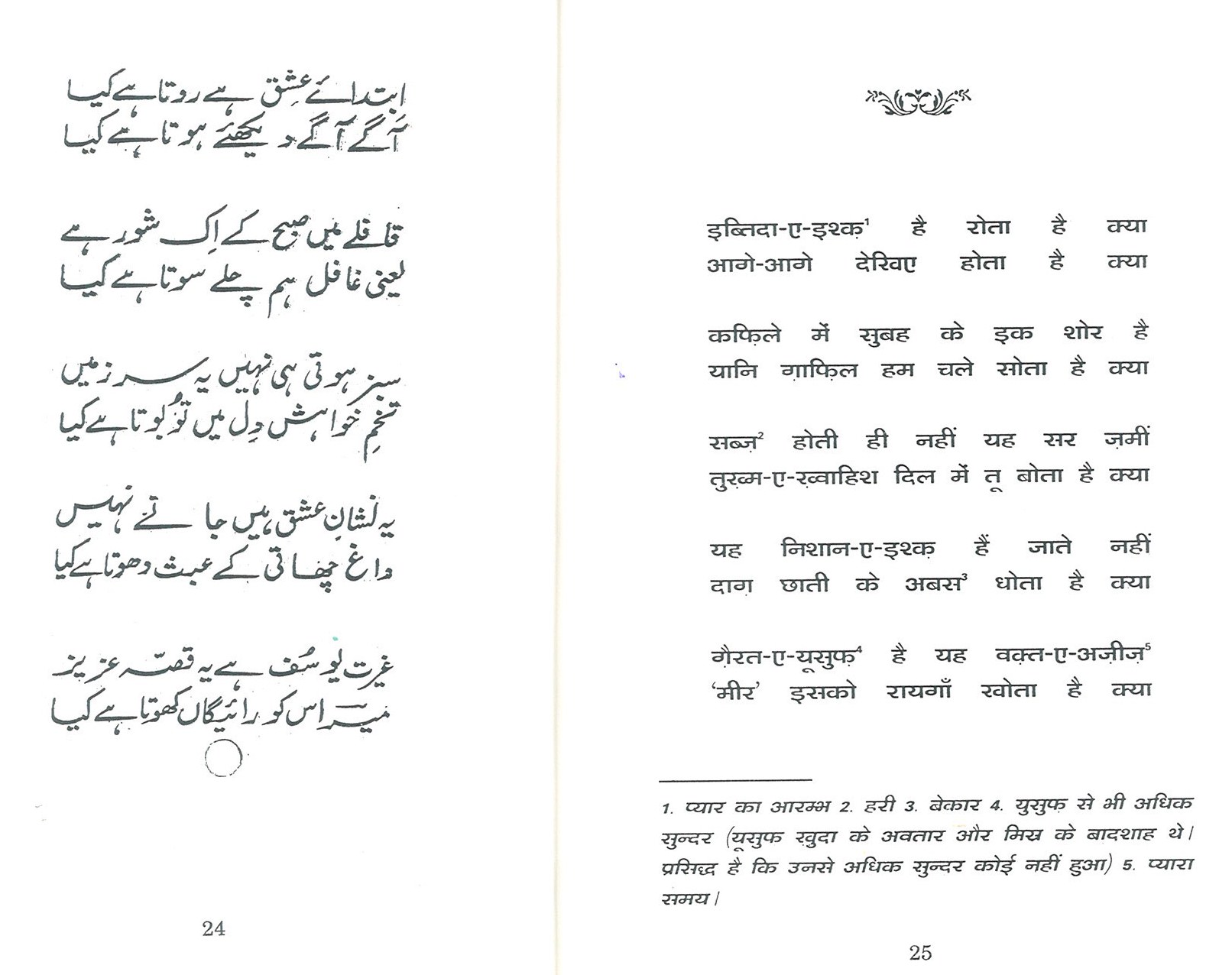 The Urdu and Hindi scripts of the ghazal are below, from the book “Meer ki shayari” (compiled by Amar Dehlvi)